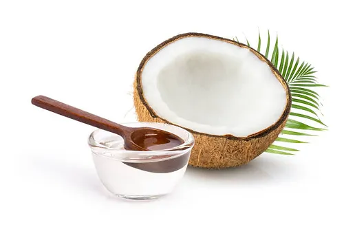 PPEARANCE, FLAVOR & COLOR : Coconut oil is solid below and liquid above room temperature because it consists mostly of short chain fatty acids. Flavor and odor are bland. Color, Lovibond = 1.5 red Max.