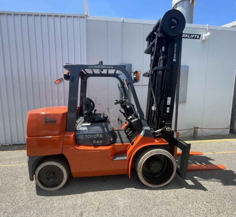 7000kg capacity with a 6000mm three stage mast, 3rd and 4th valve plumbed to the carriage.